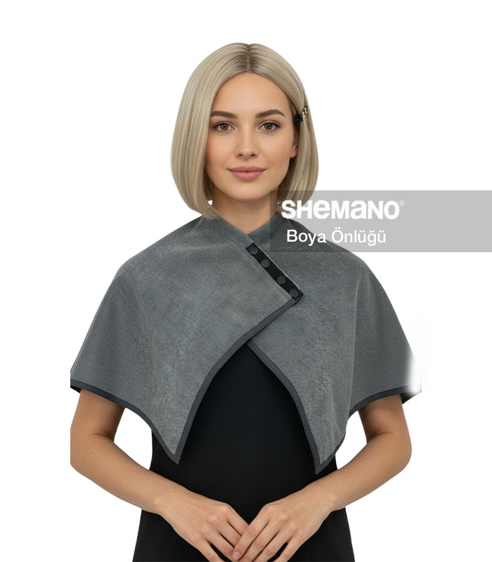 Kuaför saç kesim örtüsü, çevre dikişi biyeli tasarımı, paslanmaz çelik kancalı ve lastikli rahat yakası ile konfor sunar.