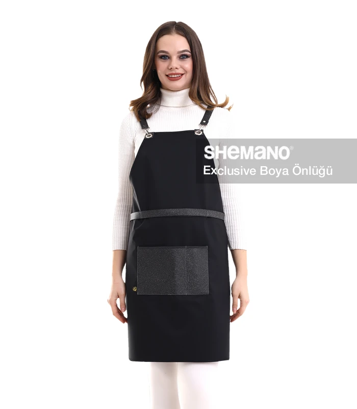 Bayan Kuaför Önlüğü, çapraz omuz askısılı lastik yakalı tasarımıyla boya tutmaz salonlarınız için mükemmel bir seçenektir.