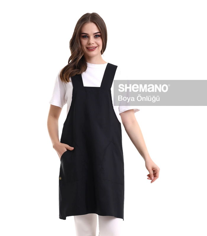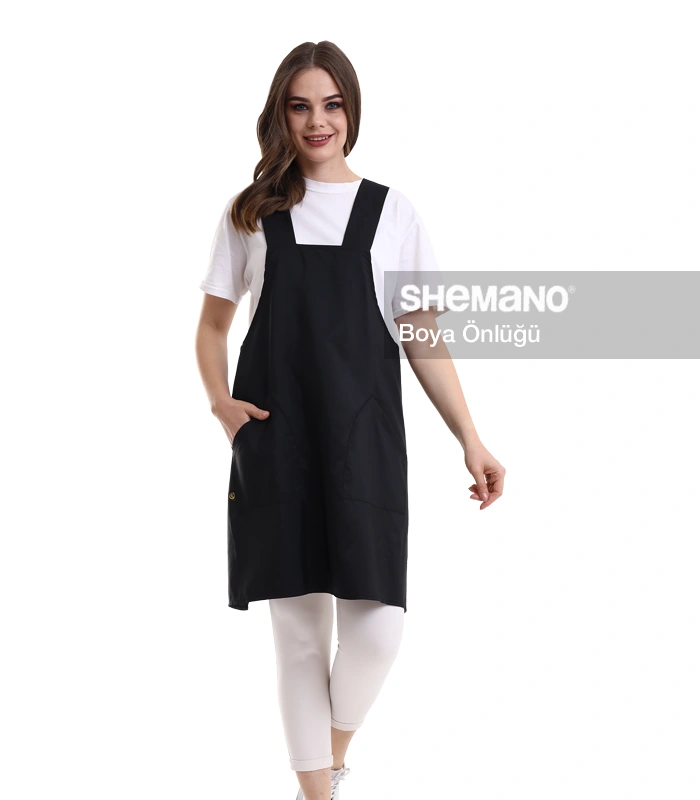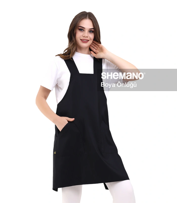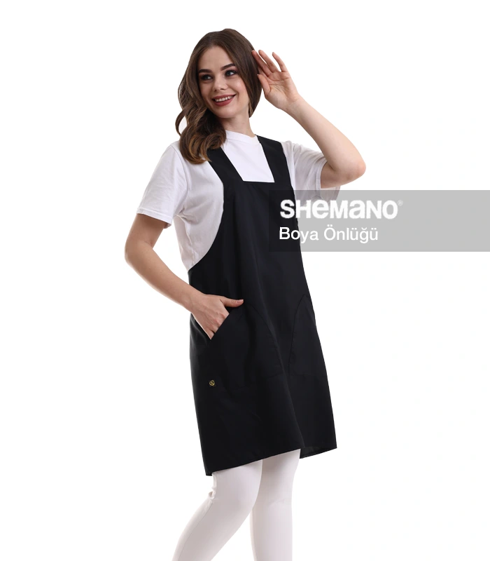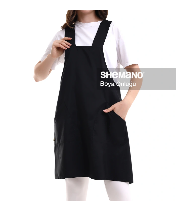 Kuaför Kişiye Özel Önlük, çapraz omuz askısılı lastik yakalı tasarımıyla boya tutmaz salonlarınız için mükemmel bir seçenektir.
